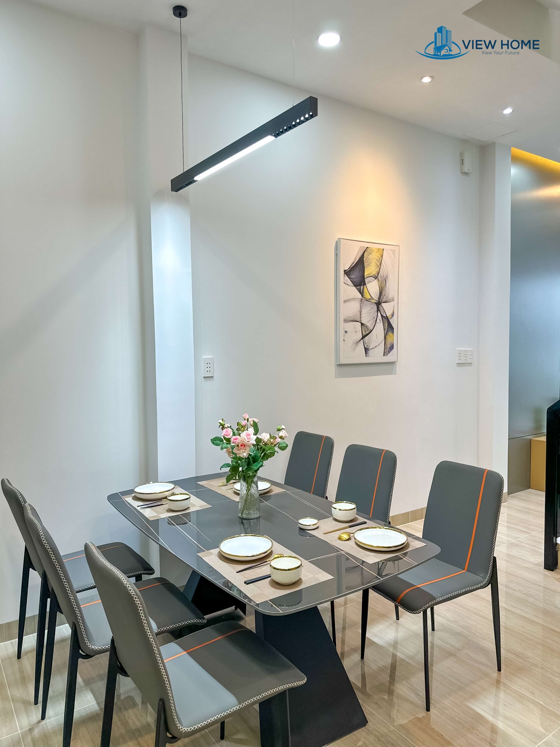 Kết cấu : 1 trệt, 1 lầu . Bao gồm : 1 phòng khách, 1 bếp và bàn ăn, 2 phòng ngủ, 2 tolet bố trí cho mỗi tầng . Giếng trời sau cực kỳ rộng rãi và thoáng mát. Đã được setup Nội Thất.