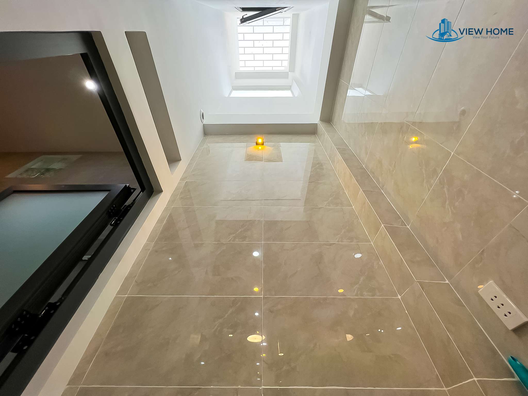 Tầng trệt : đầu tiên là khu vực để xe riêng biệt và rộng rãi , phòng khách , cầu thang bên phải nhà + Giếng trời ngay ô cầu thang và cuối nhà thoáng mát . Tiểu Cảnh trong nhà, phòng bếp bàn ăn và tolet . FULL Nội Thất Cao Cấp